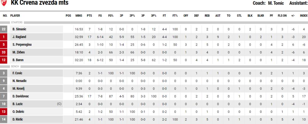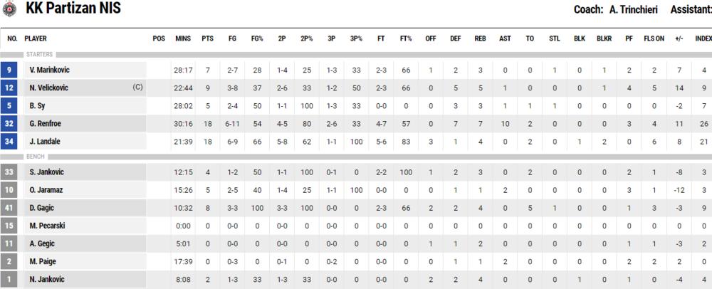 Crveno-beli imaju prednost nakon pola sata igre u Nišu od 57:55. Davidovac je za sada igrač utakmice, a treba istaći da za sada nema nijedan promašaj iz igre. Renfro je trojkom ublažio ovaj nalet Zvezde, a očekuje nas sjajna poslednja četvrtina.