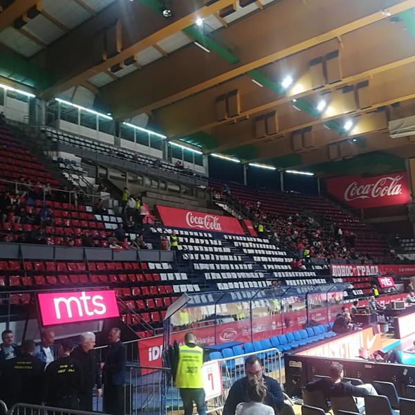 18:00 - Evo kako Hala Pionir izgleda sat vremena pred utakmicu. Navijači Zvezde su spremile koreografiju za ovaj Večiti derbi