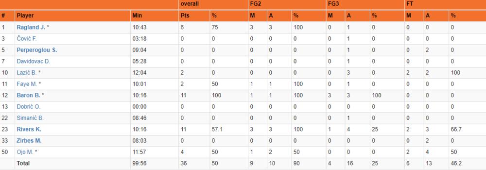 36. minut - Čović igra utakmicu karijere, čak 7 asistencija je podelio ove večeri