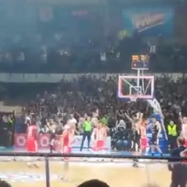 Onda je usledio šou na tribini gde je bila frakcija navijača "Partizanovci". Svi igrači Partizana su pevali "Nije više Zvezda, sad je FMP".