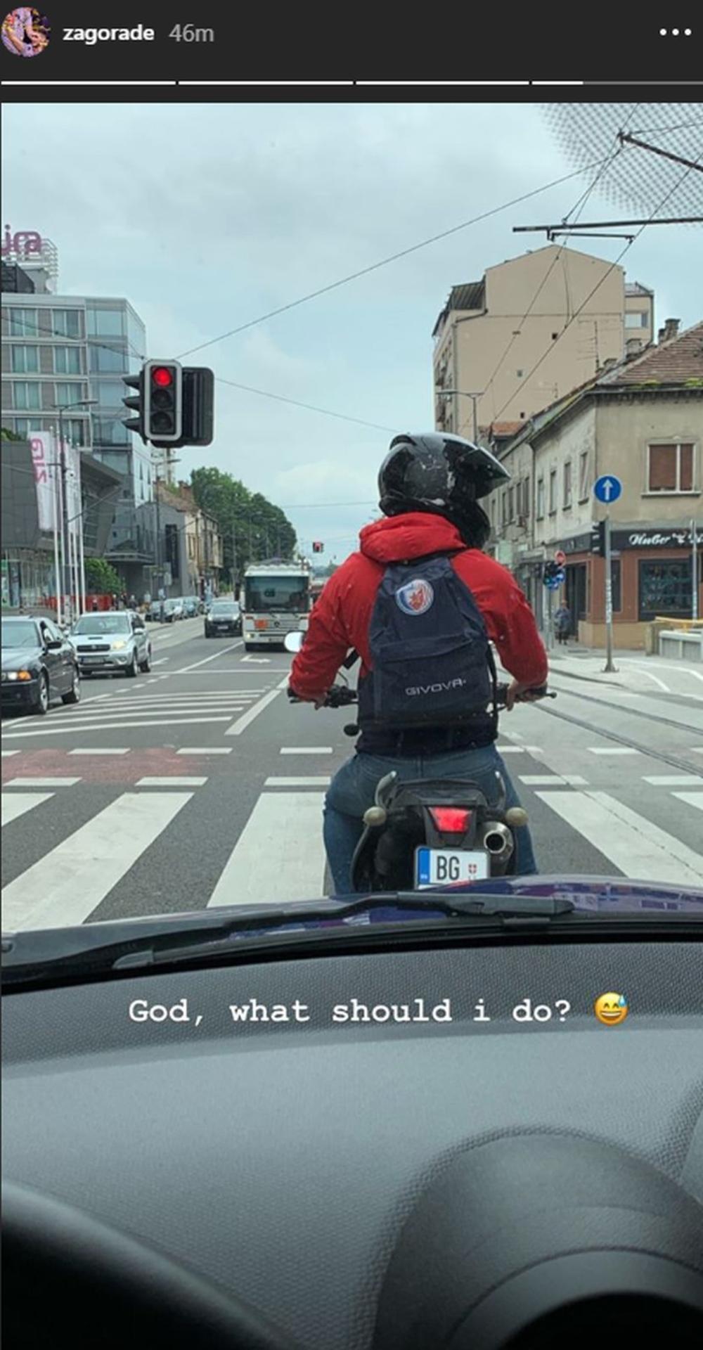 Naime, Zaogac je uslikao jednog motociklistu koji je na leđima nosio ranac sa grbom Crvene zvezde, uz veoma zanimljiv opis.