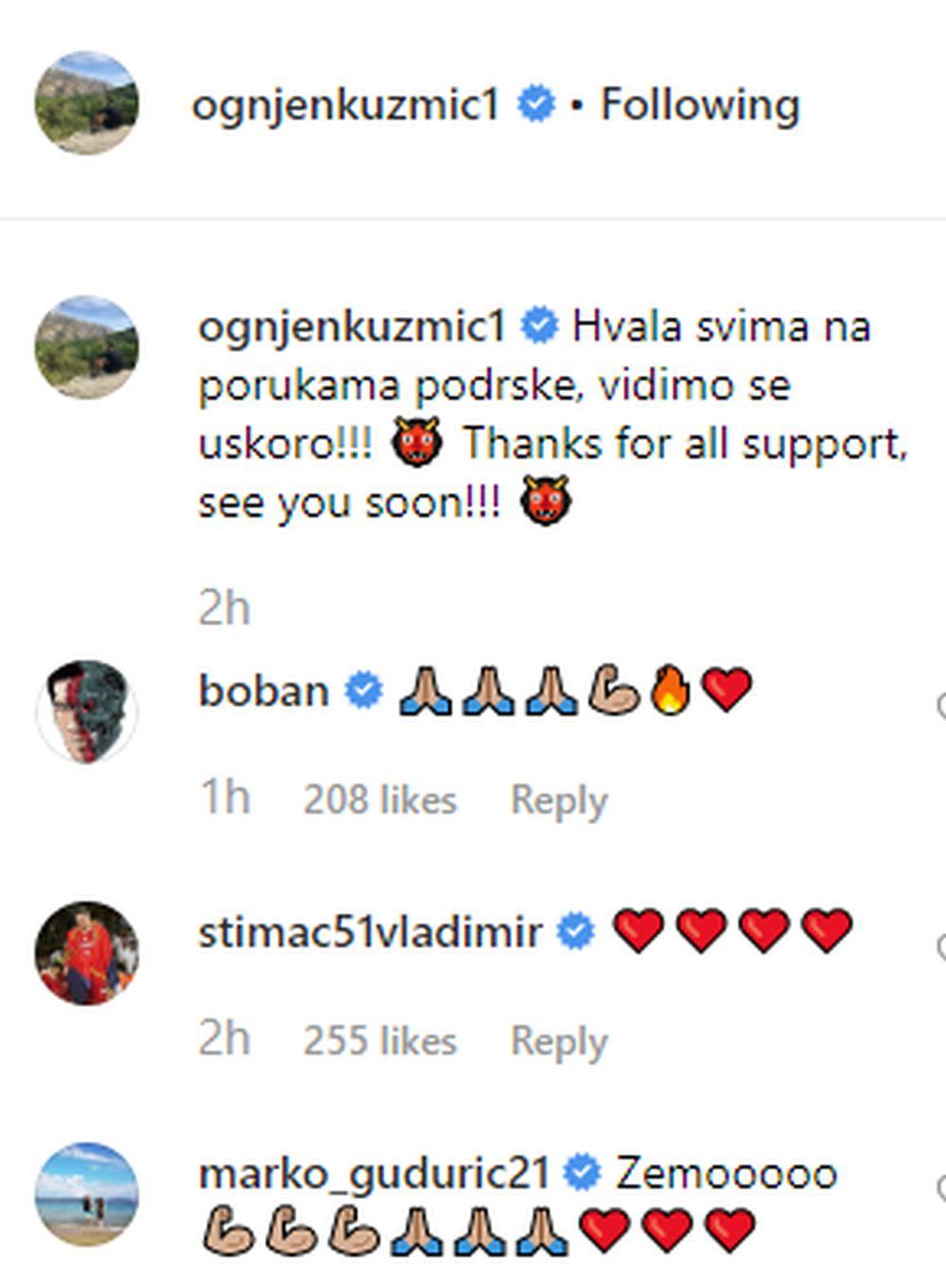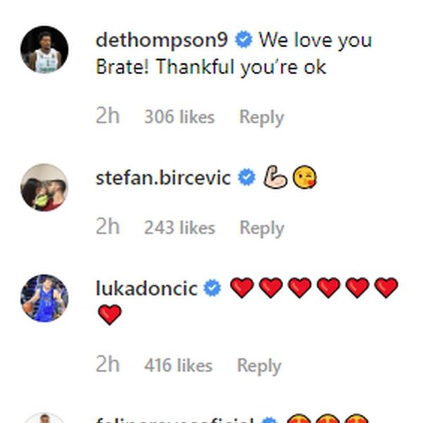 Odmah su mu se javili brojni bivši saigrači, kolege i prijatelji koji su imali samo poruke podrške za njega i želje da što pre stane na noge i vrati se košarci.
