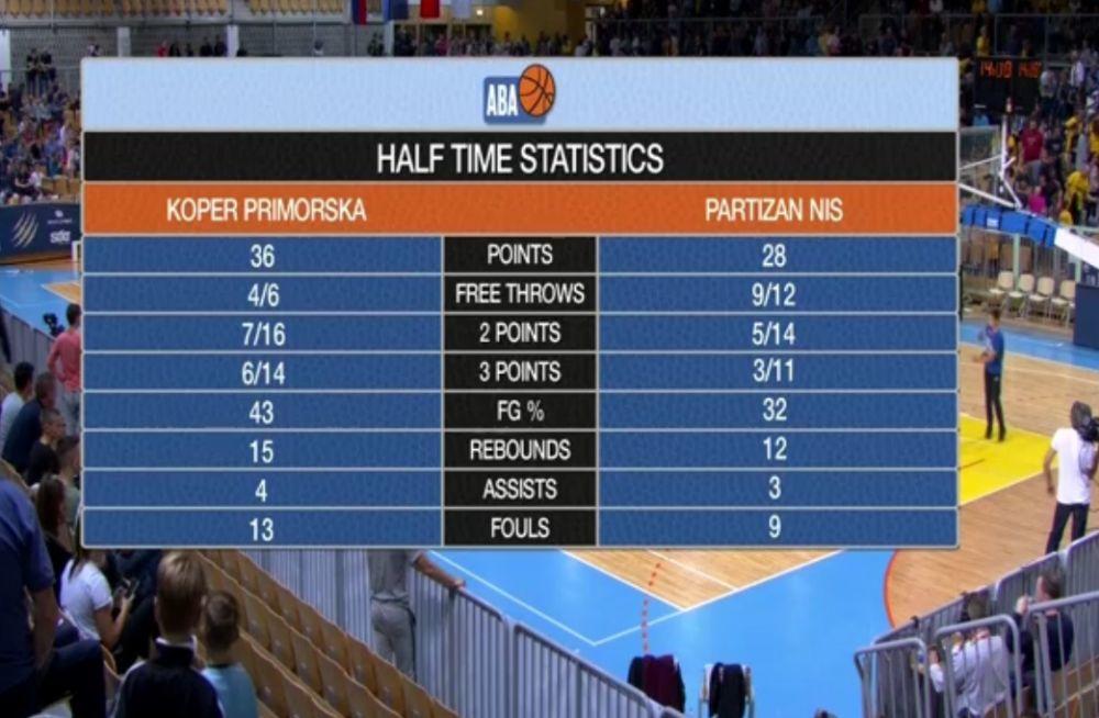 POLUVREME: Primorska - Partizan 36:28