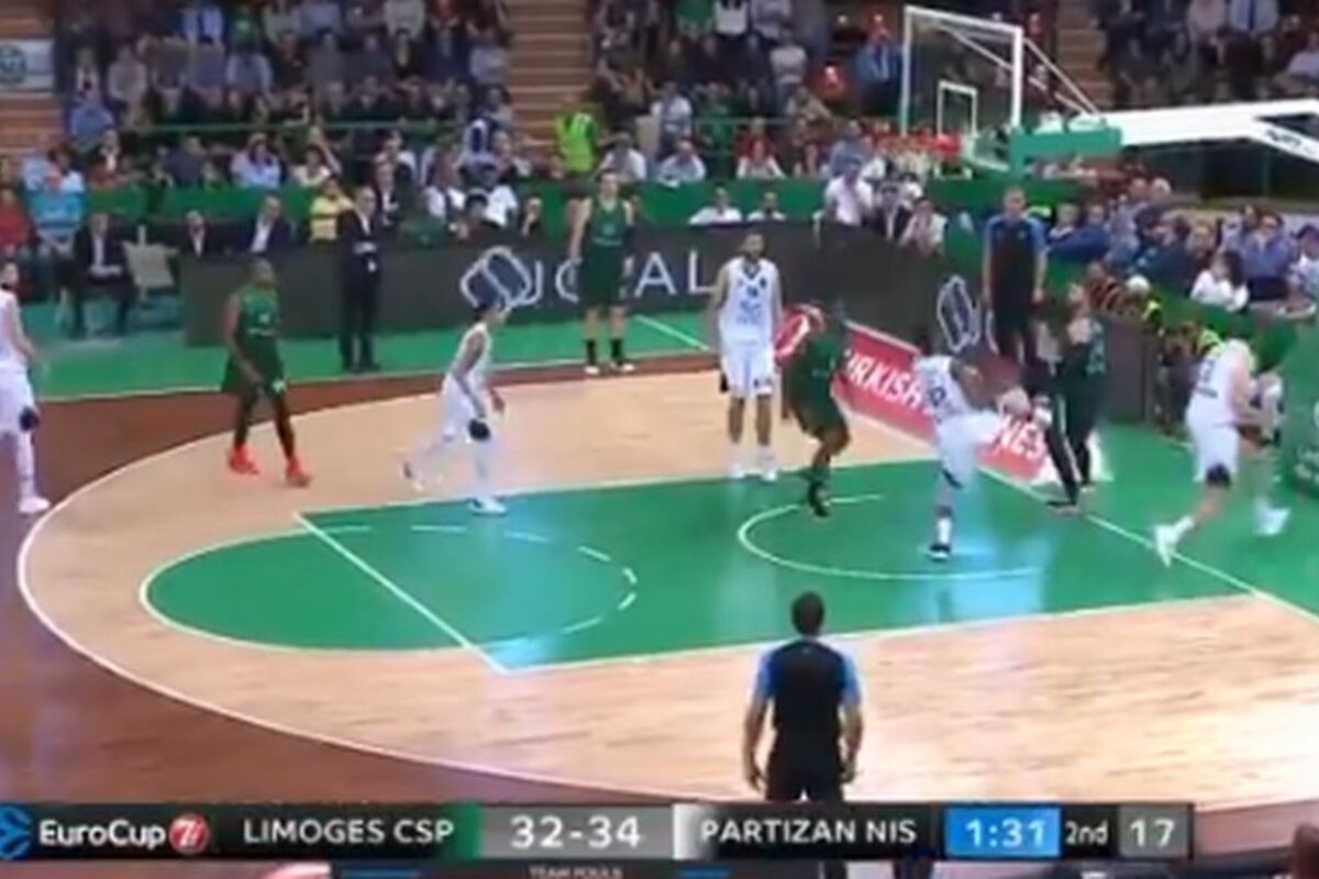 Vilijam Mozli zalepio na tablu igrača Limoža, Foto: Printscreen/Twitter/@EuroCup