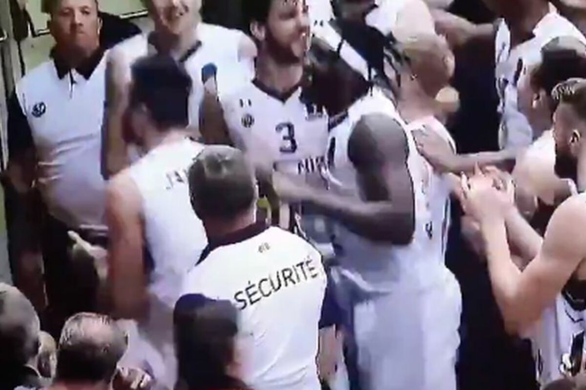 Rašon Tomas slavi sa saigračima i navijačima u Limožu, Foto: Printscreen/Twitter/@ima1tim