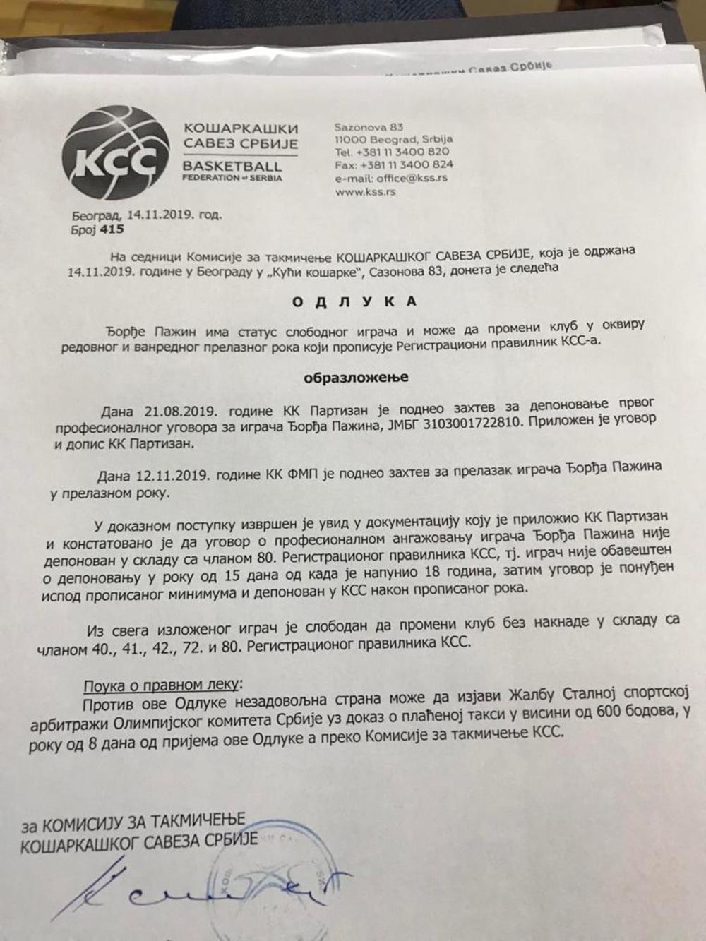 Mladi reprezentativac Đorđe Pažin i zvanično je postao član FMP Železnika sa kojim je potpisao trogodišnji ugovor. Tinejdžer koji pokriva više pozicija u timu, visok je 2 metra, i smatra se jednim od najvećih talenata u Evropi među igračima koji su rođeni u 21. veku. Pažin je rođen u Ćupriji 31.marta 2001.godine, prethodne dve sezone nastupao je za ekipu Partizana NIS, a prelazak u redove KK FMP još jedna je potvrda da najtalentovaniji mladi igrači vide naš klub kao idealnu sredinu da se na pravi način košarkaški razvijaju. Pažin je sa selekcijom Srbije do 16 godina osvojio bronzanu medalju na EP 2017.godine u Podgorici, prošao je sve mlađe selekcije naše zemlje, a kao veliki talenat čiji su kvaliteti primećeni i van granica Srbije, već sa 14 godina nastupao je za mlađe selekcije madridskog Reala, i kasnije italijanske „Stela Azzure“. Učestvovao je na kampu „Košarka bez granica“ 2018. godine, a iste sezone je bio i MVP juniorske ABA lige u kojoj je ubacivao preko 27 poena po utakmici.