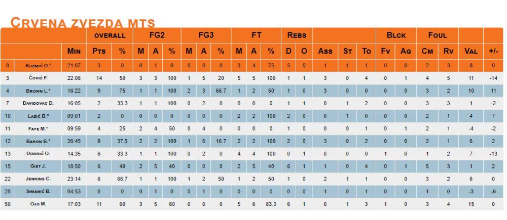 Najefikasniji u pobedničkom taboru je bio Kori Volden sa 13, a pratio ga je Gordić sa 12 poena. U redovima crveno-belih Čović je bio najefikasniji sa 14, dok je Odžo ubacio 11.