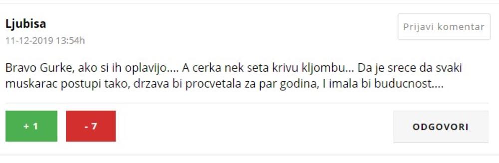 Bravo Gurke,ako si ih oplavio.. A ćerka neka šeta krivu kljombu. Da je sreće da svaki muškarac postupi tako, država bi procvetala za par godina, i imala bi budućnost. - glasi jedan od skanaloznih komentara.