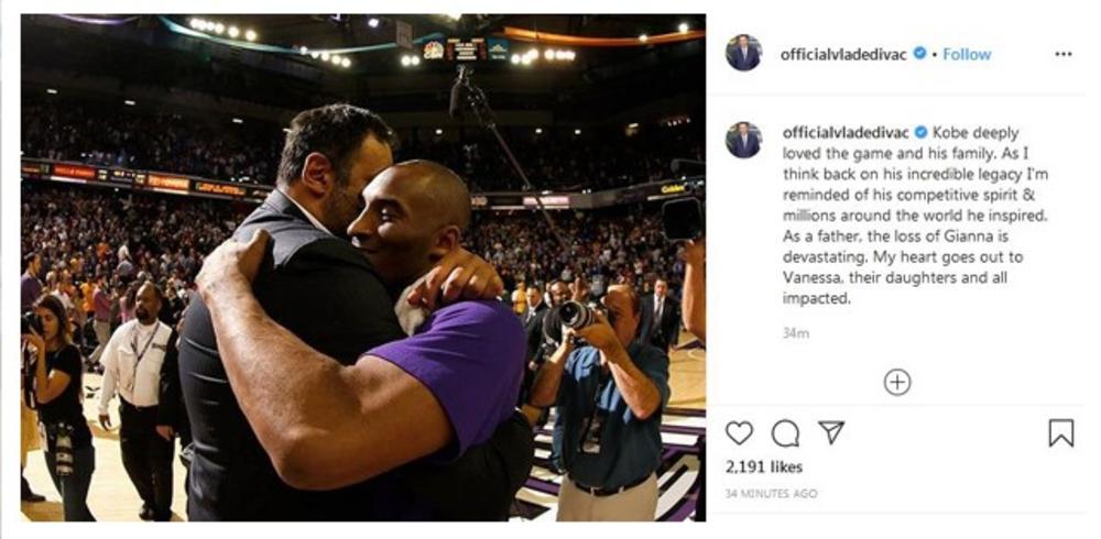 - Kobi je mnogo voleo košarku i svoju porodicu. Kada se prisetim njegove zaostavštine prvo mi pada na pamet njegov takmičarski duh i kako je inspirisao milione ljudi širom sveta. Kao otac, smrt Đijane je užasna. Moje srce ide Vanesi Brajant, njihovim ćerkama i svima koji su pogođeni - poručio je Divac putem Instagrama.