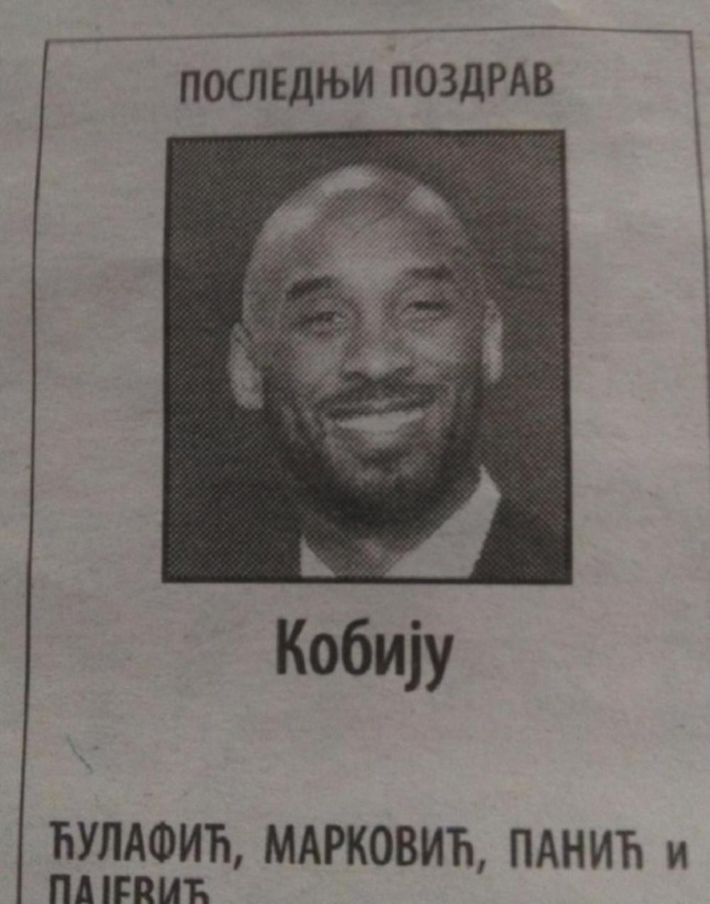 ČITULJA ZA KOBIJA U SRPSKIM NOVINAMA: Poslednji pozdrav velikom asu!