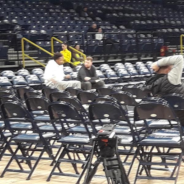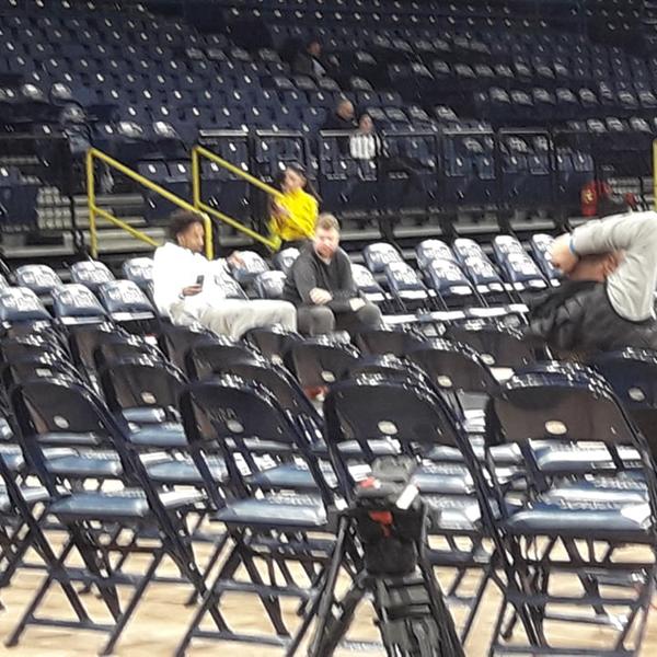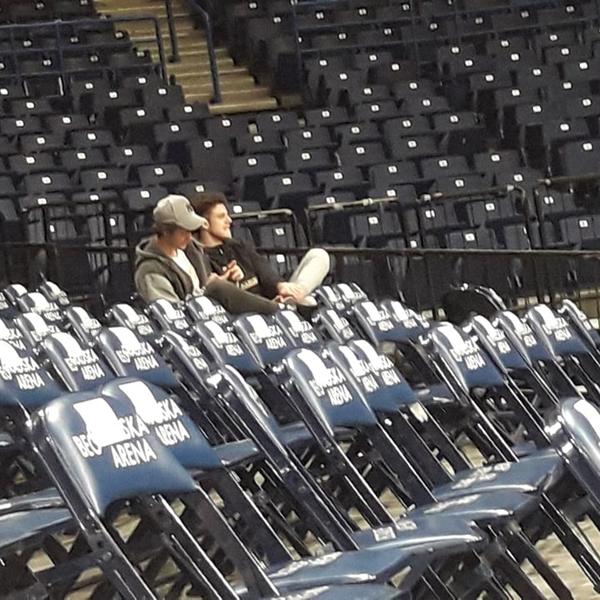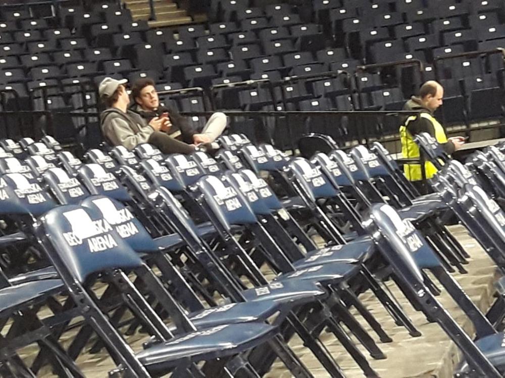 U gledalištu se nalaze Uroš Trifunović i Brajan Angola.