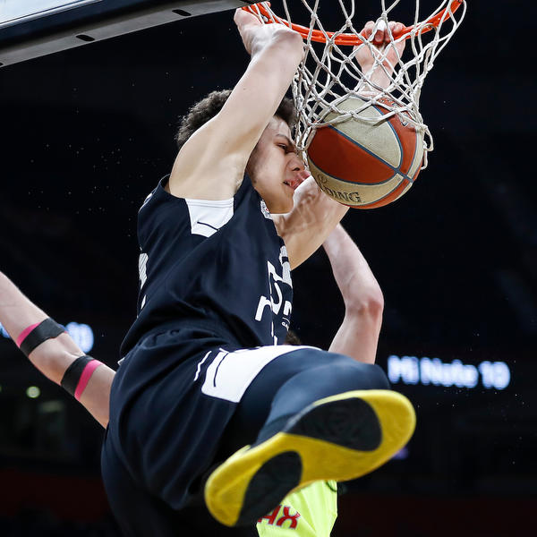 Čak ni to što su pritrčala dvojica igrača Mege da mu se prepreče, nije ga sprečilo da silovito zakuca i "posterizuje" ih.