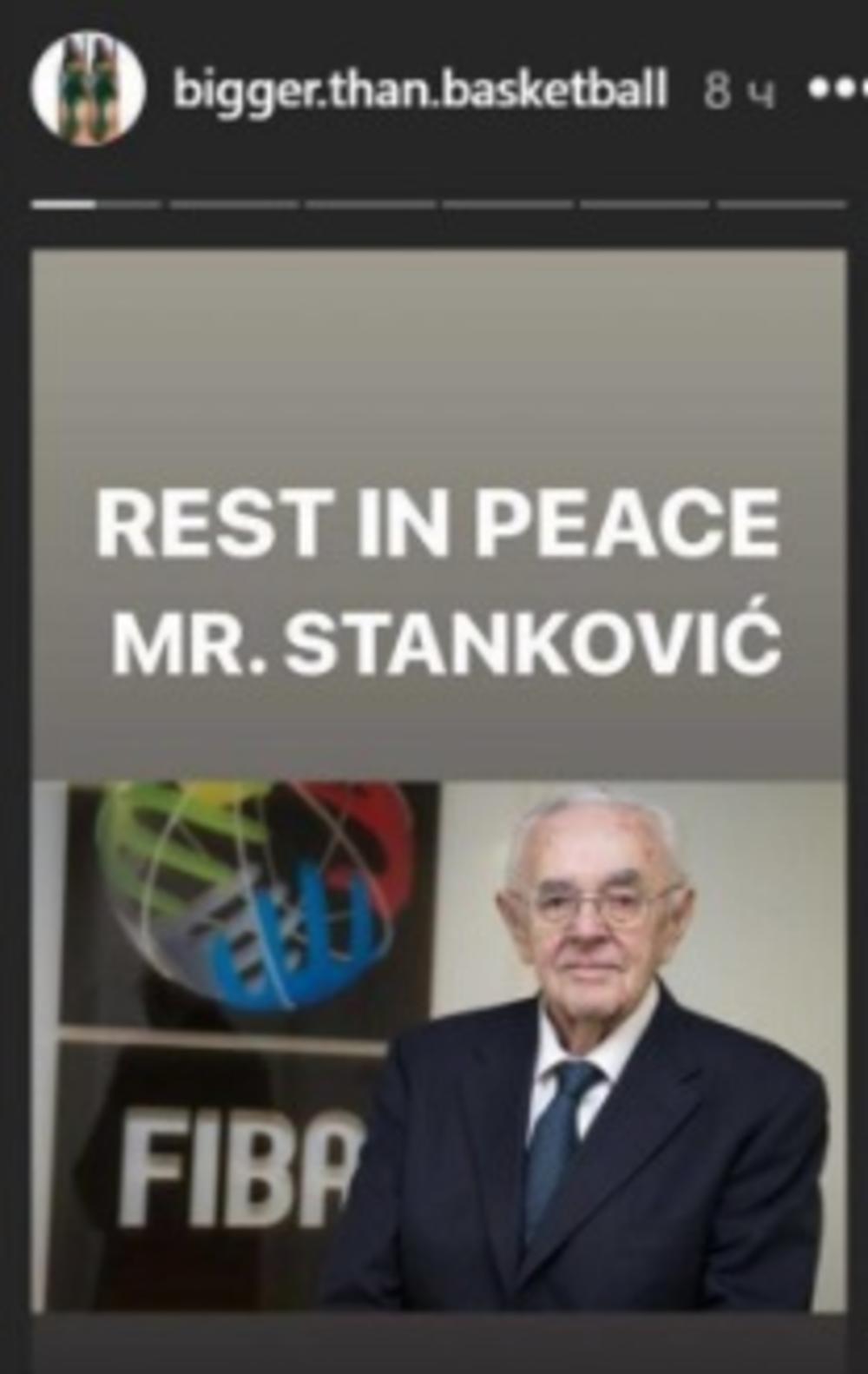 - Prokleto teška godina. U samo nekoliko meseci košarka je ostala bez ljudi koje sam volela, napisala je Miki a zatim podsetila da su ne tako davno preminuli as Lejkera Kobi Brajant i komesar NBA lige Dejvid Štern napisala je ona, a zatim okačila fotku pokojnog Bore sa komentarom - Počivajte u miru, gospodine Stankoviću.