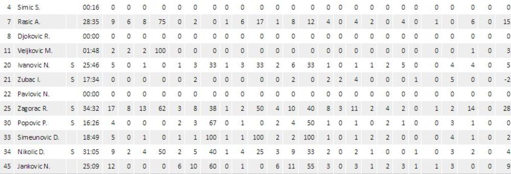 Najbolji pojedinac utakmice bio je Stefan Jović sa 11 poena, 8 asistecija i 5 skokova, dok je najefikasniji u Zvezdi bio Marko Simonović sa 14 poena. foto: Printscreenfoto: Printscreen