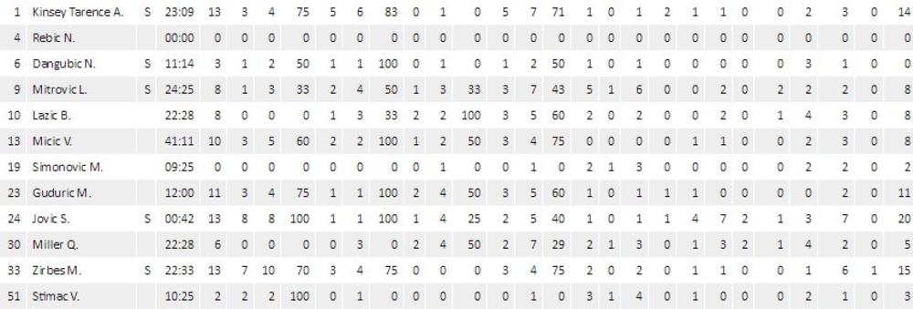 Da li je to Derel ili Deron Vilijams? Partizanov Amerikanac pravi šou na derbiju! (VIDEO)foto: FonetZvezdi bili su Jović, Kinzi i Cirbes sa 13 poena, dok je kod Partizana odličan bio Džamar Vilson sa 18 poena, a Novica Veličković je ubacio jedan poen manje. foto: Printscreenfoto: PrintscreenTOK UTAKMICE