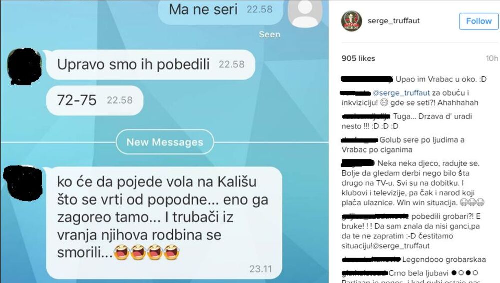 Jedan od njih je i Sergej Trifunović, glumac koji je poznati navijač kluba iz Humske, a koji je na svom Instagram profilu okačio zanimljivu prepisku sa jednim od svojih prijatelja koji takođe podržava Partizan.