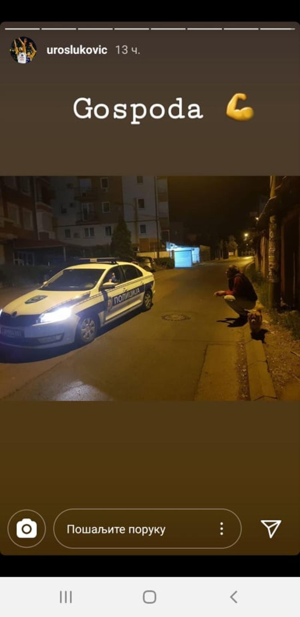 Luković je objavio sliku na svom Instagram profilu, gde u toku policjskog časa razgovara sa pripadnicima MUP-a Srbije. Na fotografiji se nalazi i njegov ker, koga je izveo u šetnju, a očigledno je da su policija i Luković vodili veoma prijateljski razgovor.