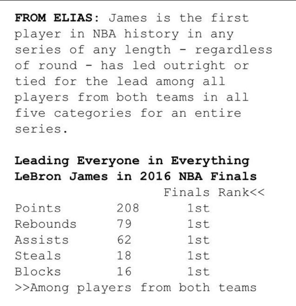 Za kraj smo sačuvali jedan neverovatan podatak. Naime, Lebron je posle sedam utakmica vodeći u svih pet najbitnijih statističkih kategorija.