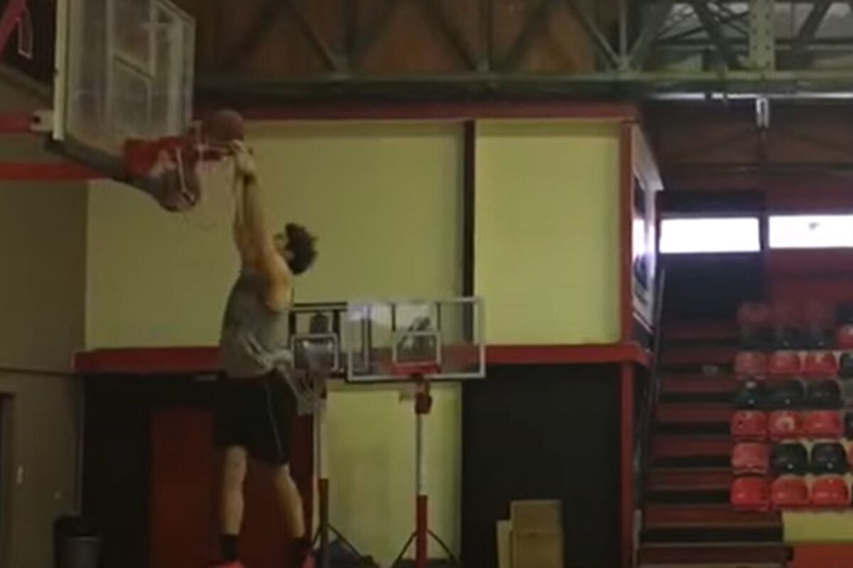 Mi smo naleteli na jedan njegov snimak kada je imao 39 godine, dakle od pre četiri godine, kada je maestralno, sa dve lopte, na jednom treningu, zakucao u isti obruč.