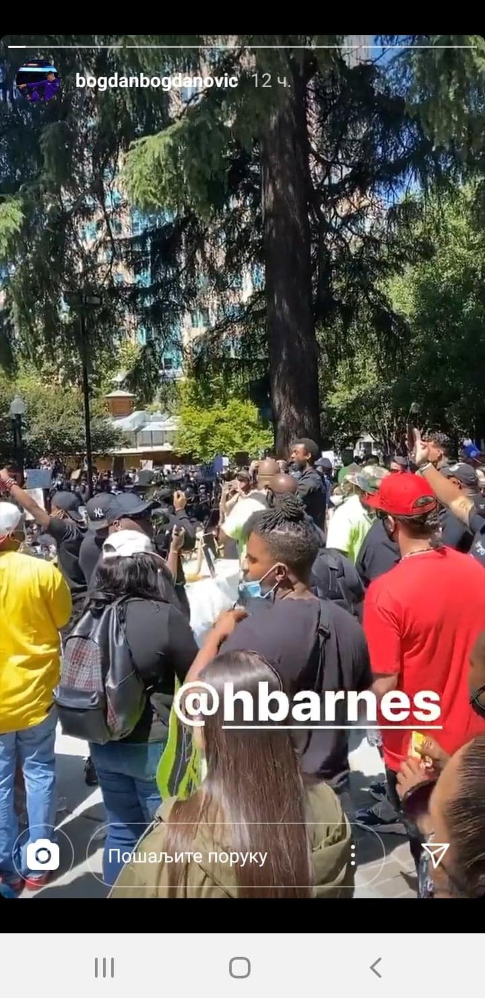 Saigrač Harison Barns bio je jedan od govornika na protestu, Bogdan je snimao delić govora.