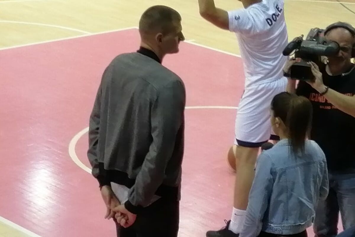 Ol star igrač i centar Denvera došao je na spektakularni revijalni meč u čast odlaska svog nekadašnjeg učitelja u Megi, Dejana Milojevića iz tog kluba posle 10 godina i svojim izgledom odmah šokirao sve prisutne.
