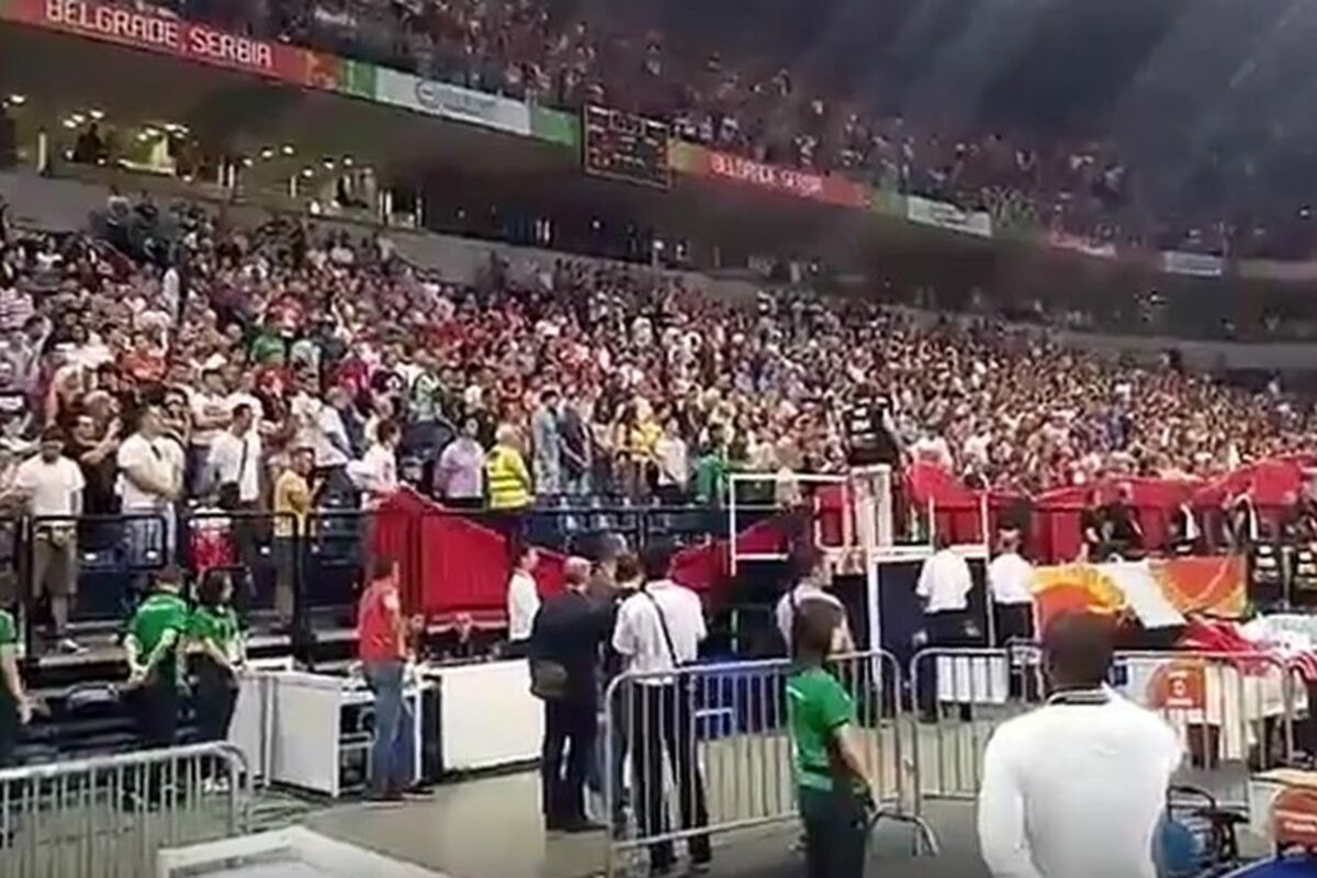 Ovacije za košarkaše, a onda muk u Areni i samo se ogromna trobojka vijori! (VIDEO)