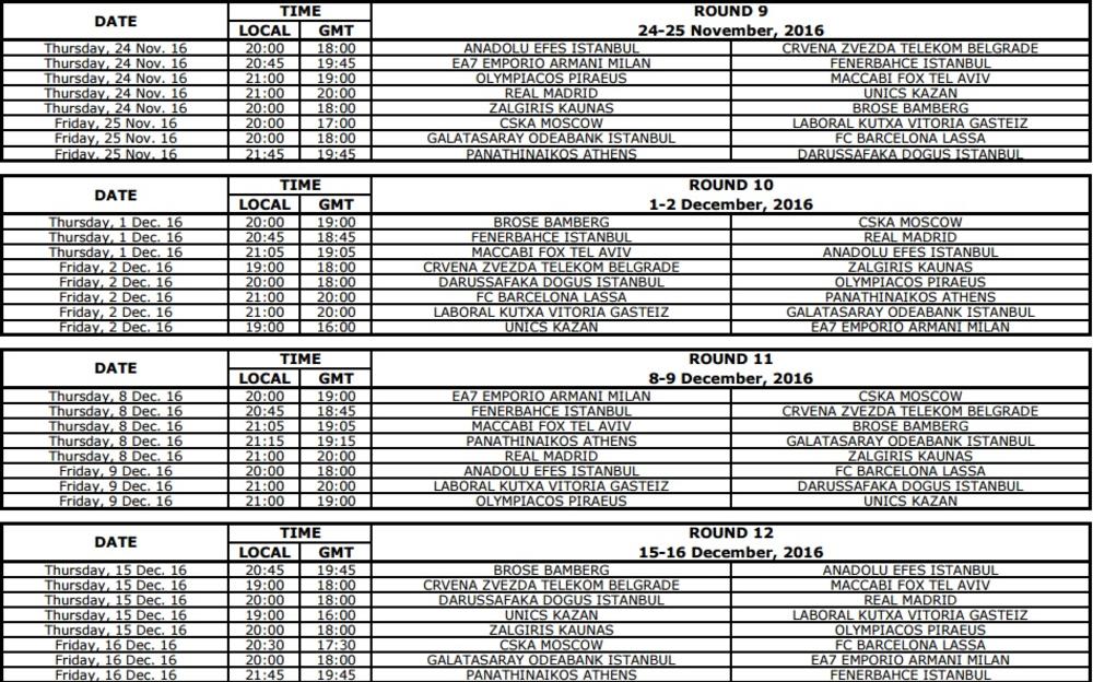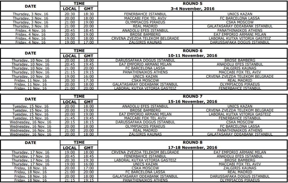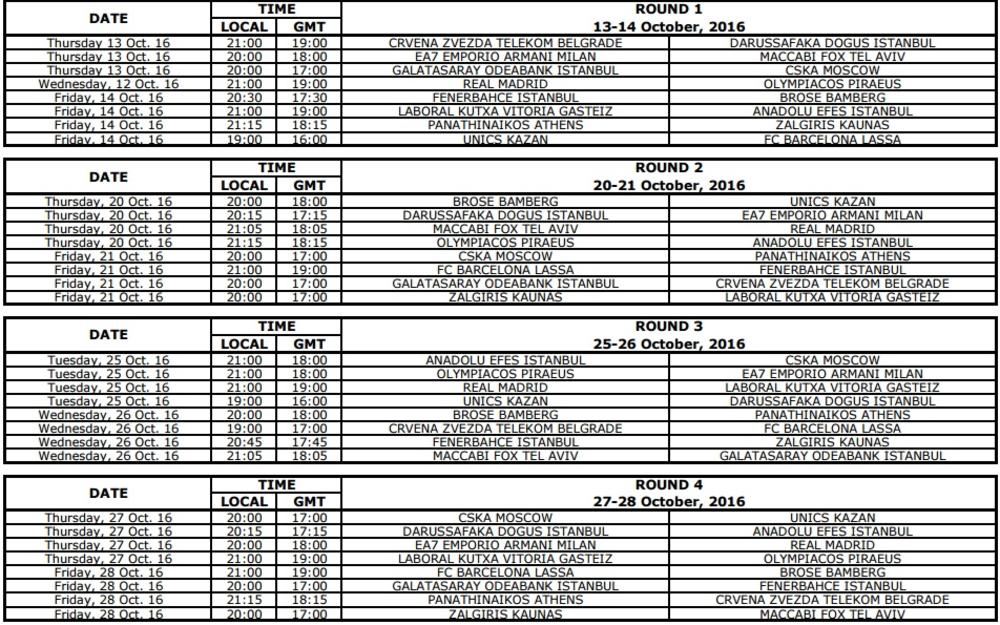 Evo i kompletnog rasporeda Evrolige za sezonu 2016/2017.