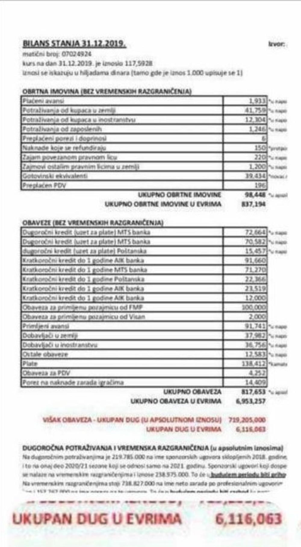 U toku dana, ili narednih par dana, očekujte kod nas i ekskluzivne informacije vezane za Partizanova dugovanja.