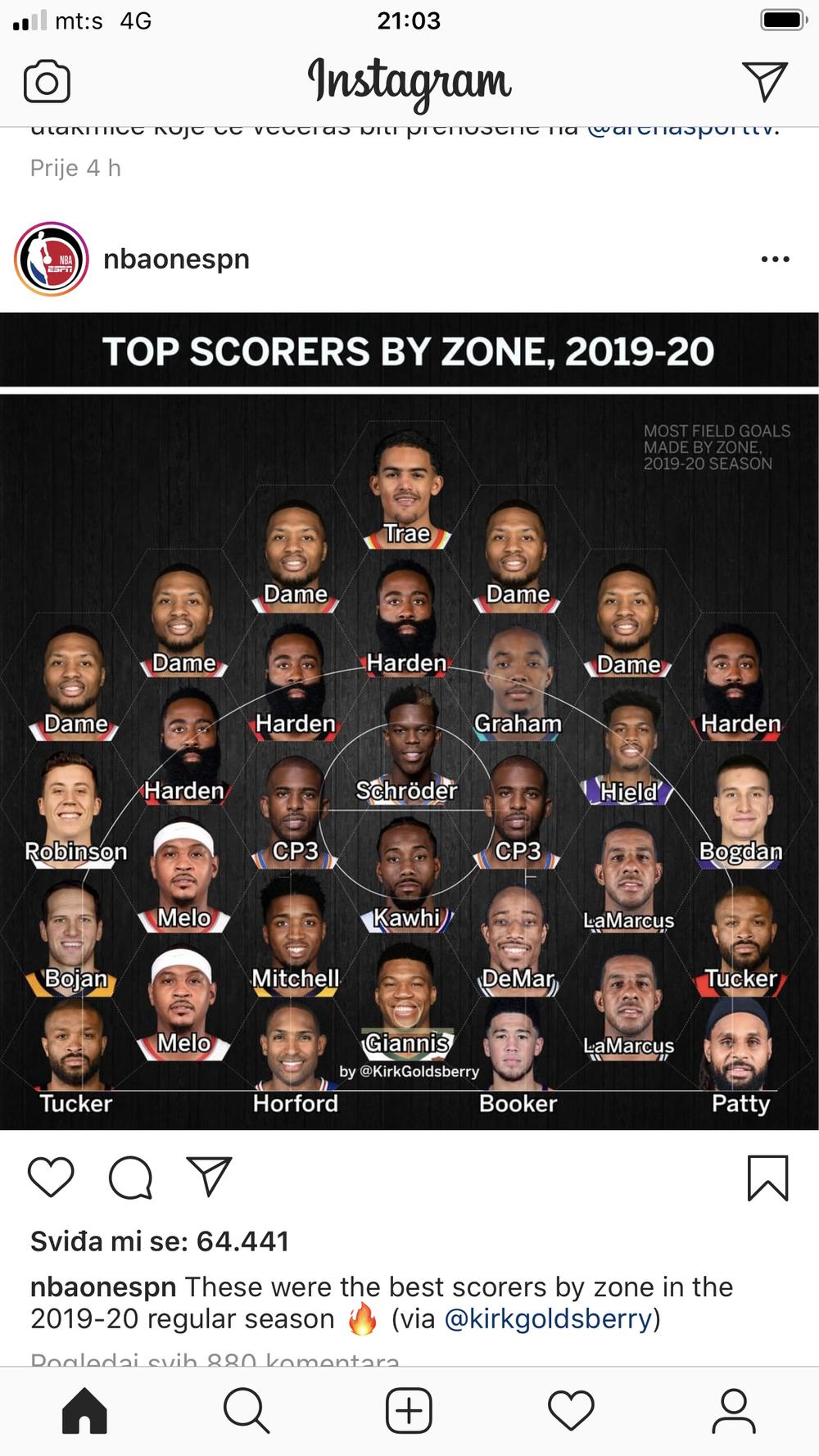 Naime, stručnjaci su analizirali najbolje šutere sa svake pozicije i odredili ko drži primat, pa je tako Bogdanović u društvu Hardena, Bojana Bogdanovića, Mičela, Janisa, Bukera...