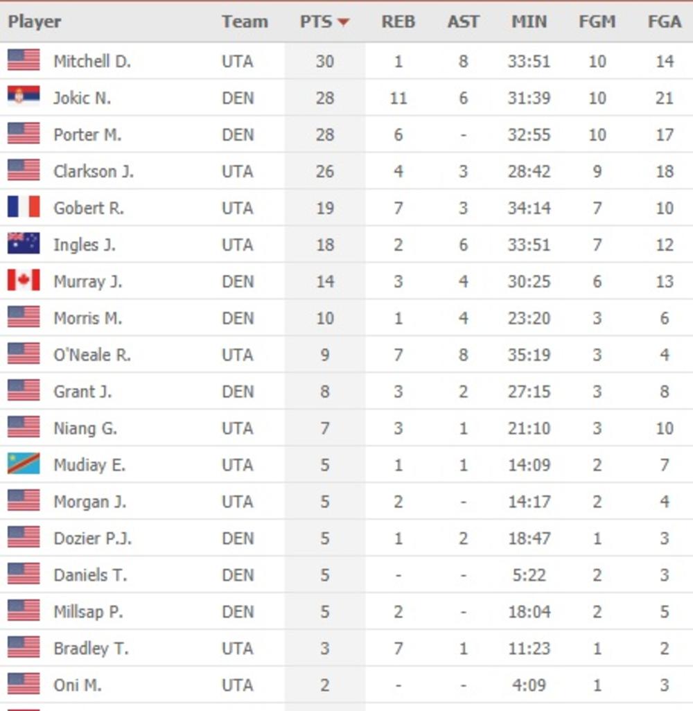Što se tiče učinka igrača, Jokićev i Mičelov smo spomenuli, a dodaćemo da je igrač Jute imao i osam asistencija.