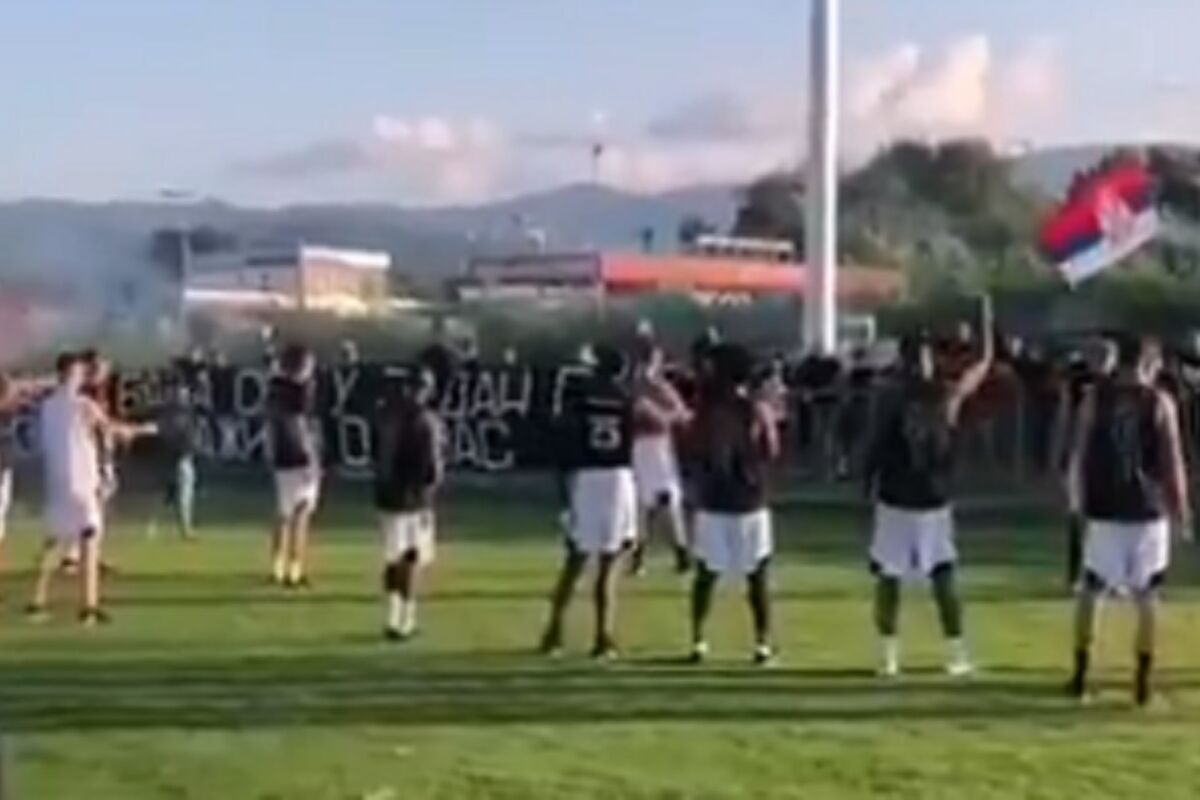 U Vrnjačkoj Banji se skupio solidan broj pristalice crno-belih, pa su pesmom i uz par baklji pružili podršku.