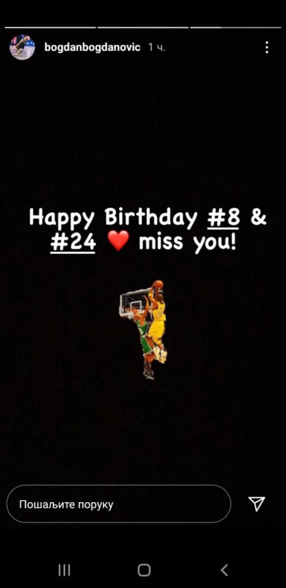 Upravo zato Bogdanović je objavio post na Instagramu posvećen čuvenom košarkašu Los Anđeles Lejkersa.