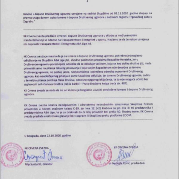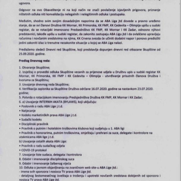 U cilju pravilnog i pravovremenog informisanja javnosti, KK Crvena zvezda mts dostavlja na uvid javnosti dopis i poziv na “sastanak” u Zagrebu, i zvaničan odgovor KK Crvena zvezda mts sa predloženim dnevnim redom, jedinim mogućim, ukoliko svi mi kao klubovi, vlasnici ove lige želimo da nastavimo da funkcionišemo u skladu sa zakonom i pravom.