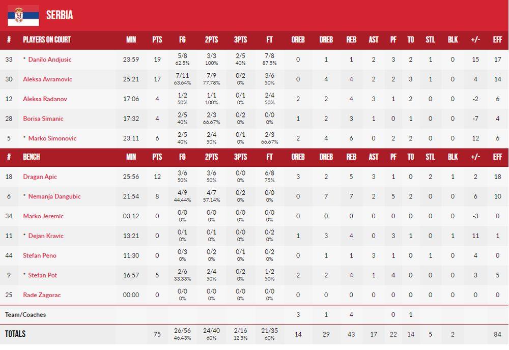 Najefikasniji u našim redovima bio je Anđušić sa 19 poena, Aleksa Avramović je dodao 17, a Dragan Apić 12.