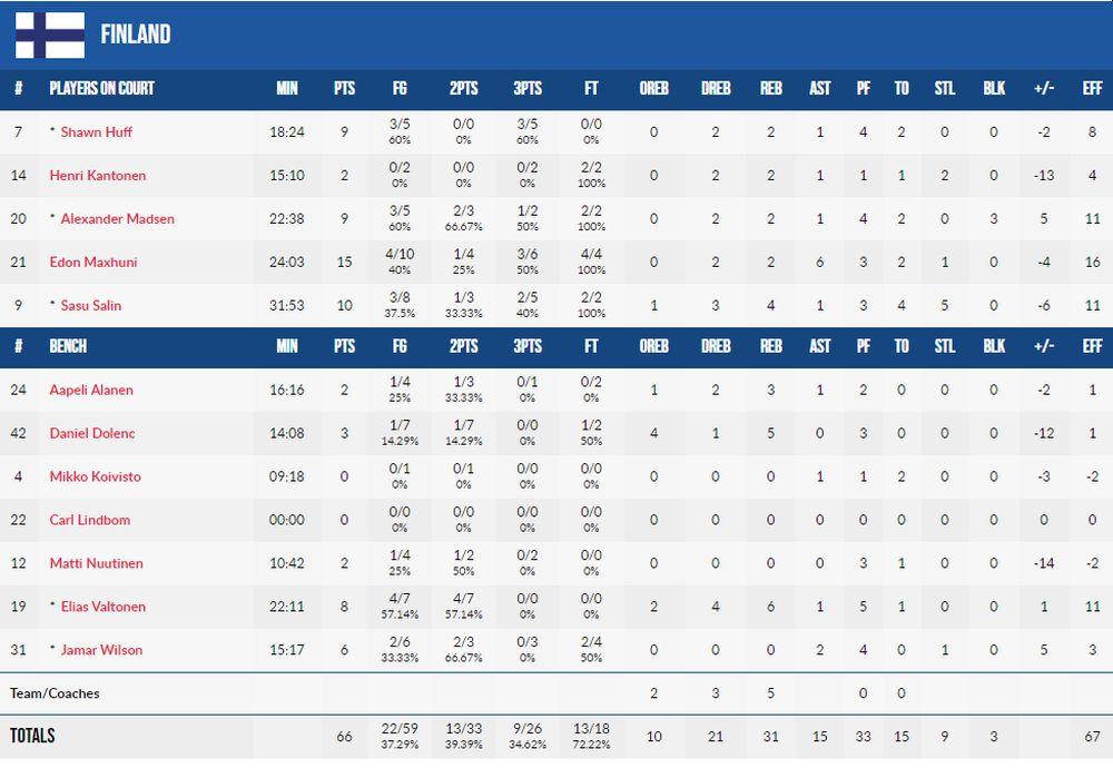 Kod Finaca je najefikasniji bio Edon Madžuni, momak rođen na Kosovu, sa 15 poena, a 10 je ubacio iskusni Sasu Salin.