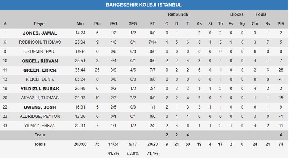 U redovima poražene ekipe 25 poena Erika Grina, a uz njega je dvocifren još samo bio Akjazili.