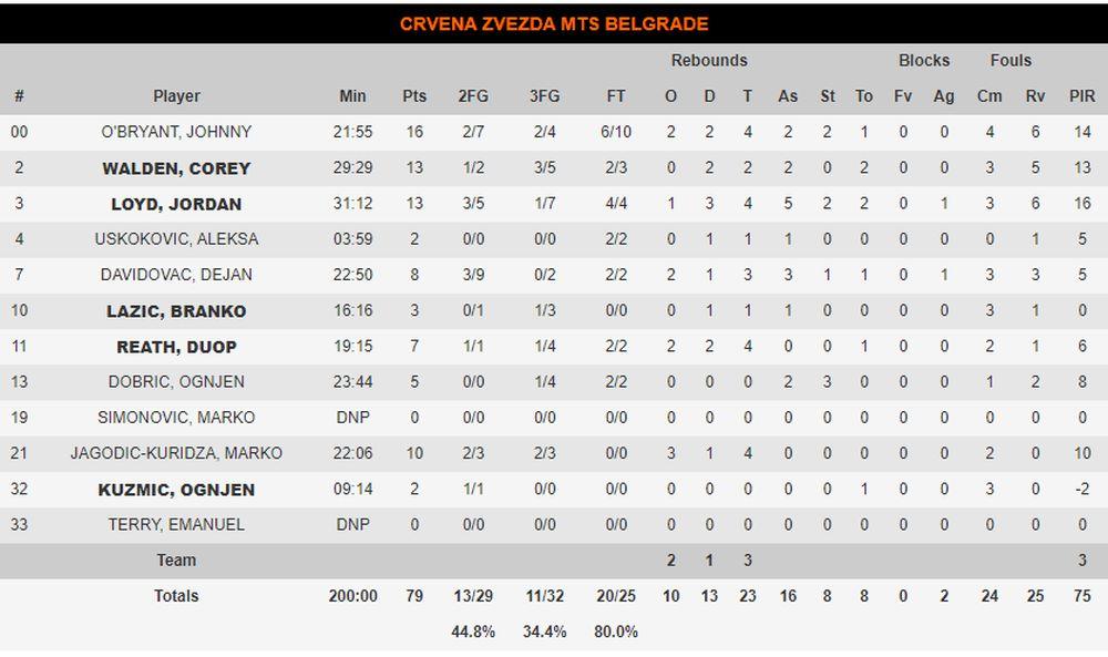 U redovima Crvene zvezde istakli su se O'Brajant sa 16, Volden i Lojd sa po 13 i Jagodić-Kuridža sa 10 poena.