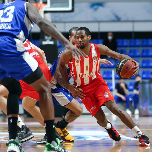 20. minut - Zvezda na poluvremenu zaostaje "samo" 11 poena razlike (43:32) i to samo zahvaljujući inspirisanom Dobriću koji je u drugoj četvrtini preuzeo odgovornost u napadu, nanizao dvocifreni broj poena i sačuvao svoj tim u priključku.