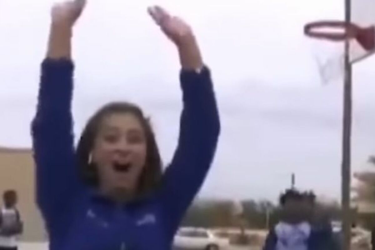 Novinarka je svom kolegi prepustila mikrofon, a ona uzela loptu kako bi ubacila koš i na taj način "upotpunila" svoj program prilikom javljanja uživo.