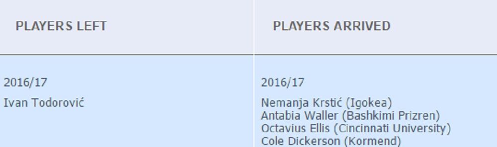 Otišao je samo Ivan Todorović, dok su stigli Nemanja Krstić (koji u svom kredencu ima čak i srebrnu medalju sa reprezentacijom Srbije), Antabija Voler, Oktavijus Elis i Kol Dikerson.