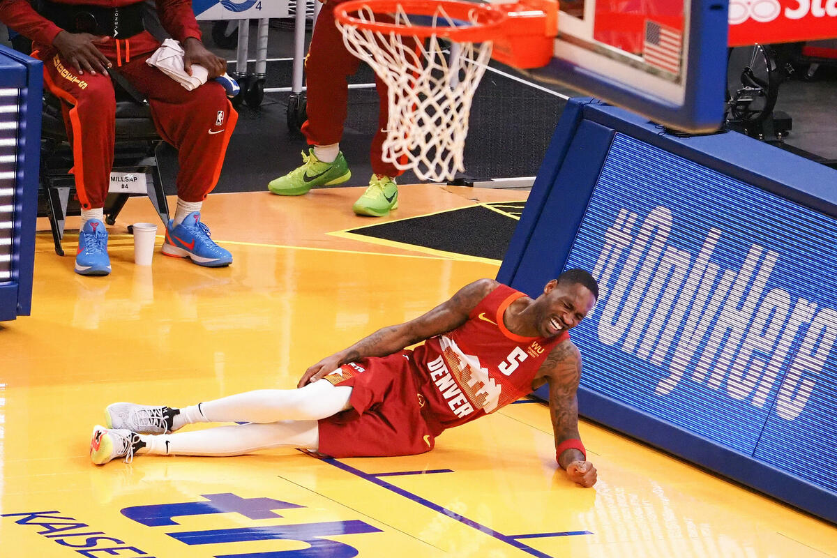 Vil Barton, koji je zamenio Monte Morisa na "kecu", koji je zamenio Džamala Mareja (ISTO se povredio protiv Golden Stejta, za njega je sezona završena, a i veliki deo sledeće sezone), povredio se sinoć u prvom minutu utakmice koju je Denver na kraju izgubio sa 118:97 od Stefa Karija i Golden Stejta.