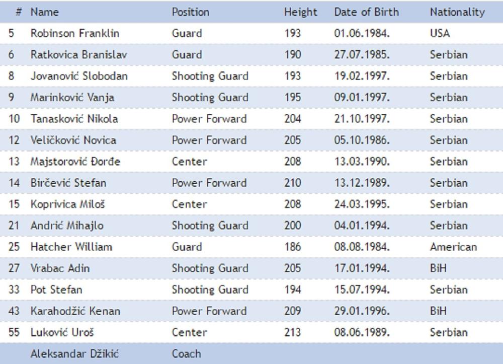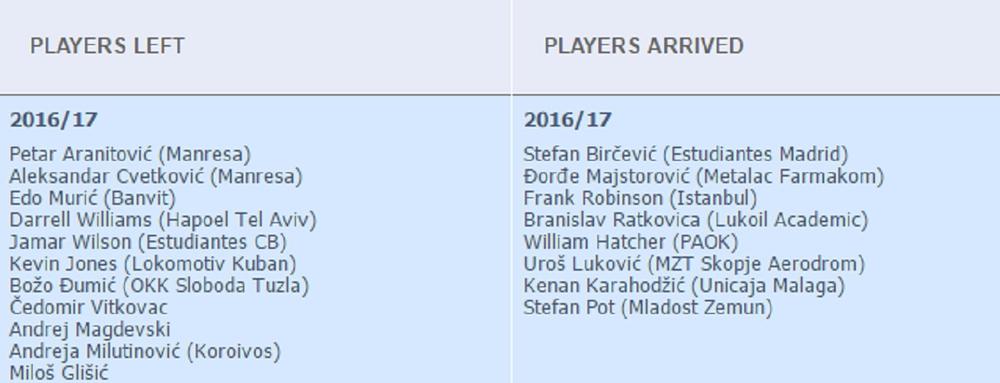 Otišlo je čak 11 igrača, a došli su Birčević, Majstorović, Frenk Robinson, Branislav Ratkovica, Vilijam Hačer, Uroš Luković, Kenan Karahodžić i Stefan Pot.