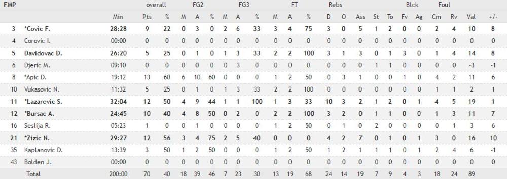 Najzaslužniji za pobedu bili su Apić sa 13 ponea i Lazarević i Žižić sa po 12.