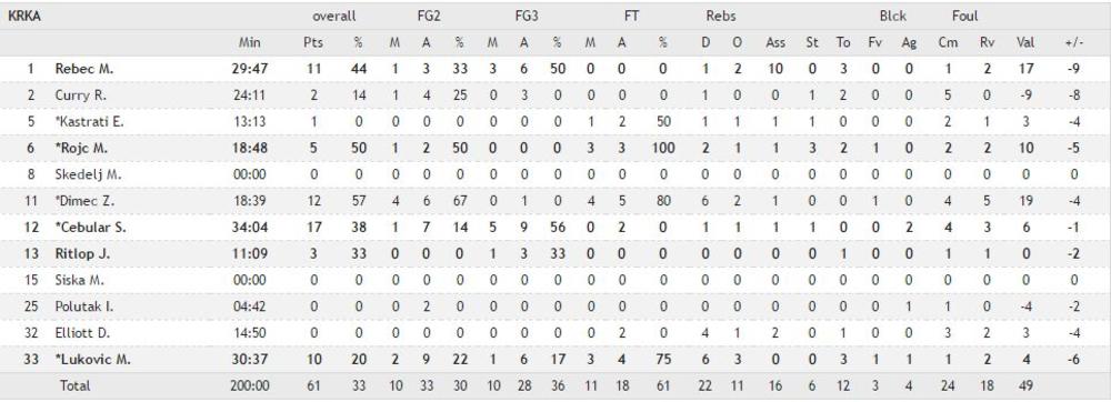 Kod domaćeg tima, jedini vredni pomena je Čebular koji je ubacio 17 poena.