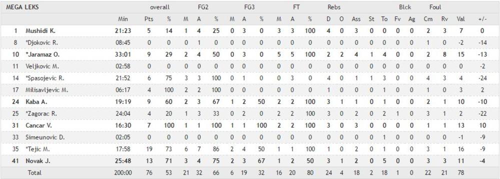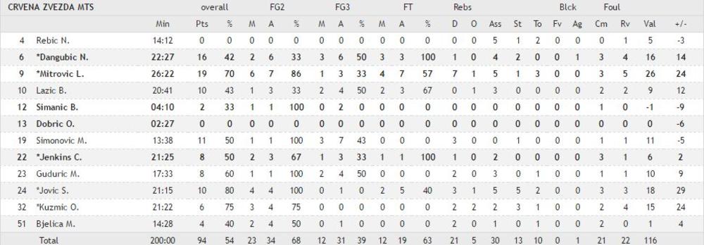 Domaći tim je imao zaista sjajnu statistiku, pošto je imao 30 asistencija, uz procenat šuta za 2 od 68 poena, odnosno za tri 40 odsto.