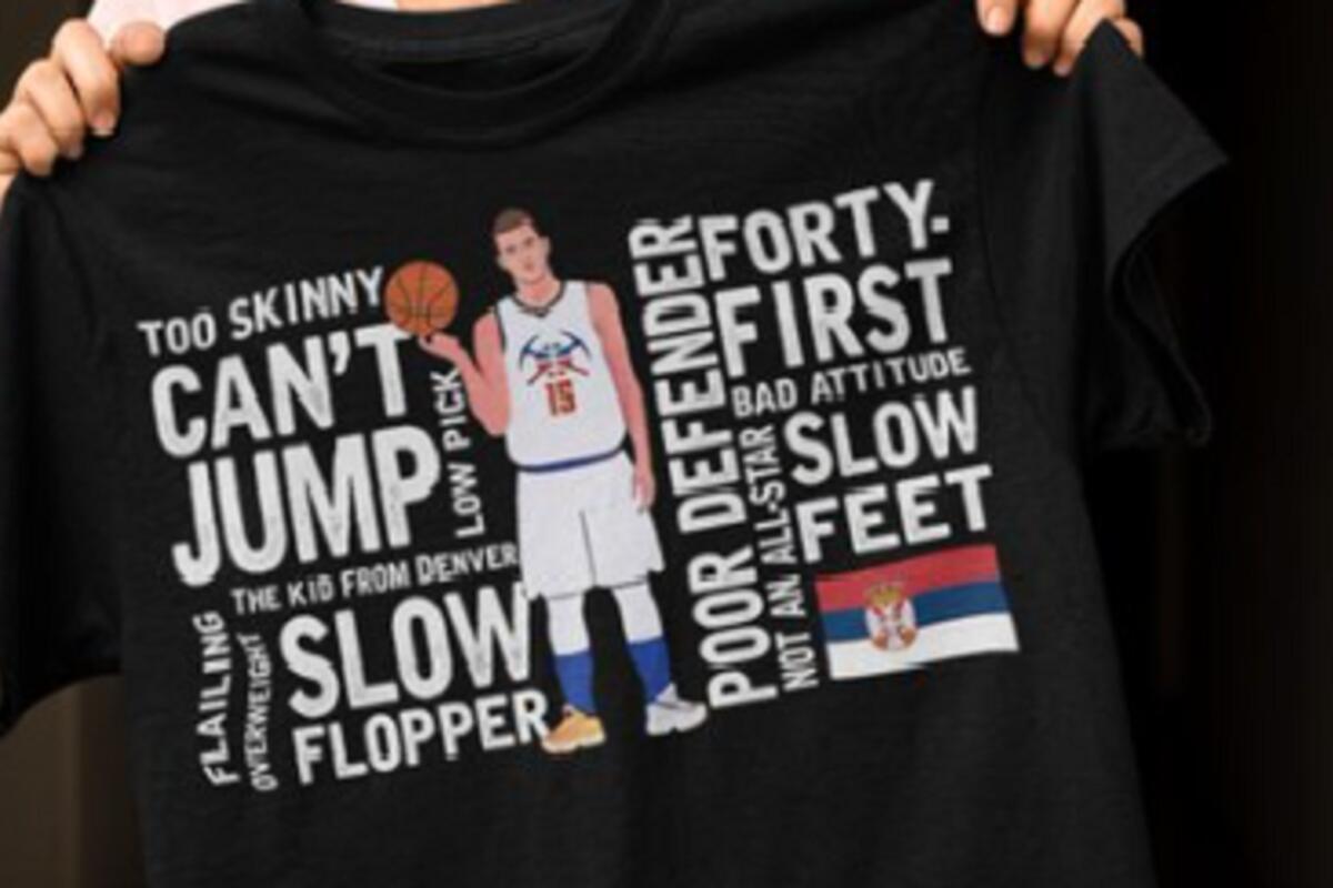 Naime, on je obukao majicu sa likom Jokića na kojoj su napisane sve kritike za Srbina koje je čuo tokom sezone.