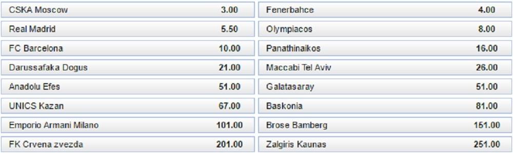 A evo i kvota koje su svetske kladionice dala pred početak Evrolige! Crvena zvezda nema baš neke ogromne šanse prema njoj! Tačnije, druga je otpozadi!
