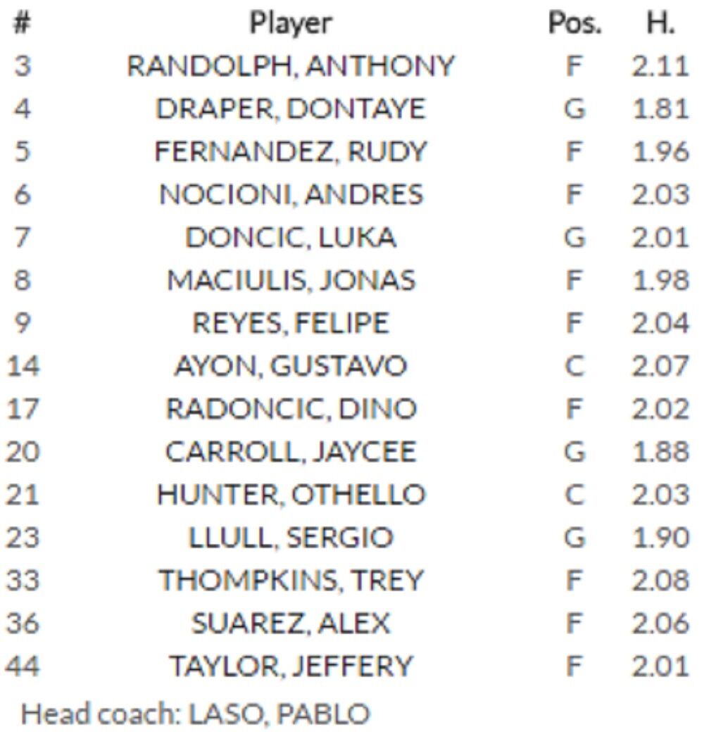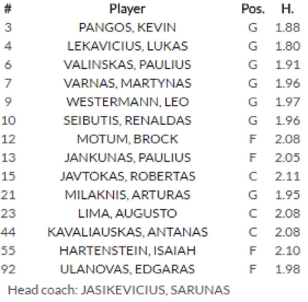 Igrači: Leo Vesterman, Kevin Pangos, Paulisu Valinkas, Martinas Varnas, Brok Motum, Arturas Milaknis, Augusto Lima, Antanas Kavaliuckas