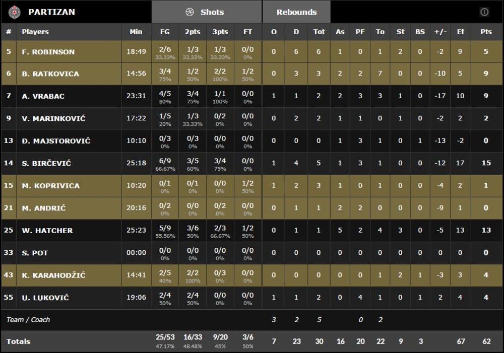 Kod beogradskog kluba, Stefan Birčević je postigao 15, Vilijam Hačer 13, a Adin Vrabac 9 poena.