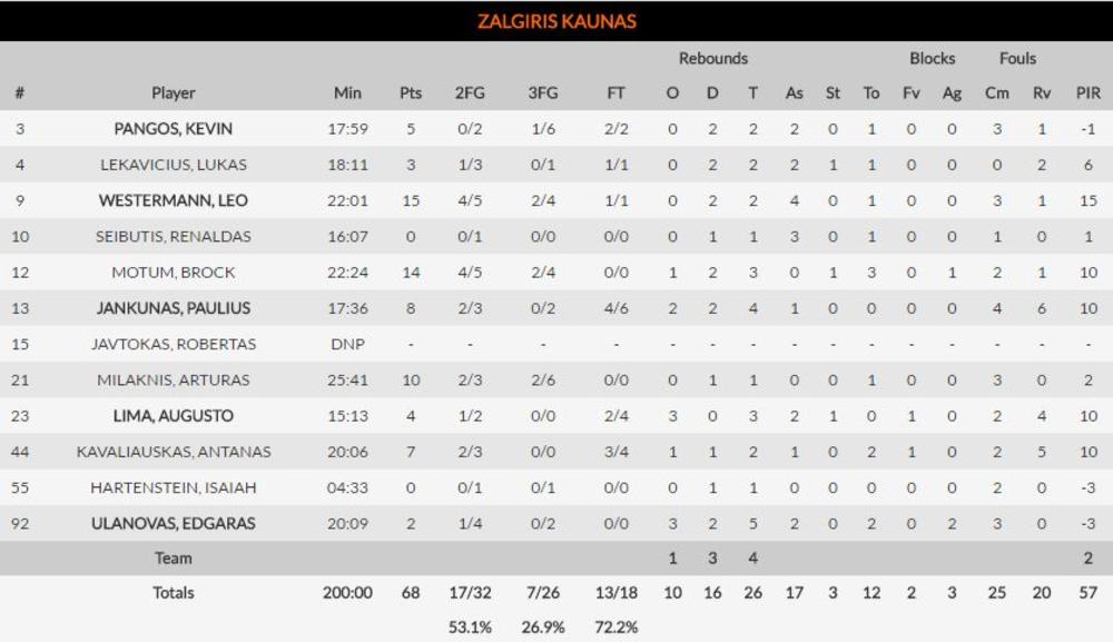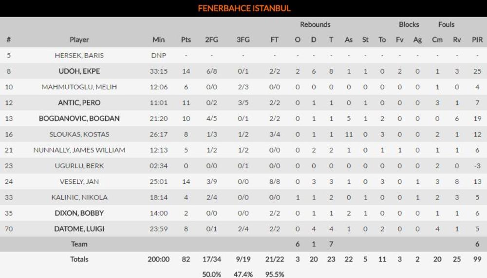 Najefikasniji u pobedničkom timu bio je Ekpe Judo sa 14 poena koliko je postigao i Jan Veseli, a Nikola Kalinić samo 4.